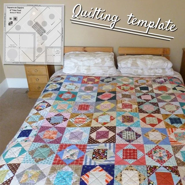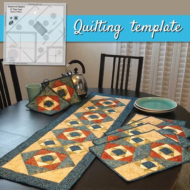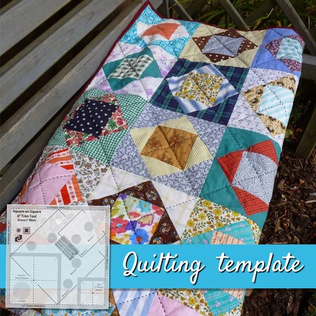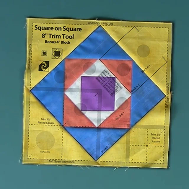 Create 3", 4", 6" or 8" square on square blocks. No calculation needed - all the cutting measurements are printed right on the tool!