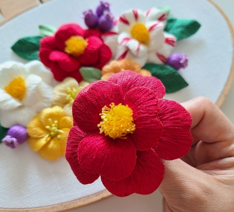 Even though it's not a real camellia, I hope you can use threads of various colors to complete beautiful flower embroidery~^-^ I wish you a bright spring!
