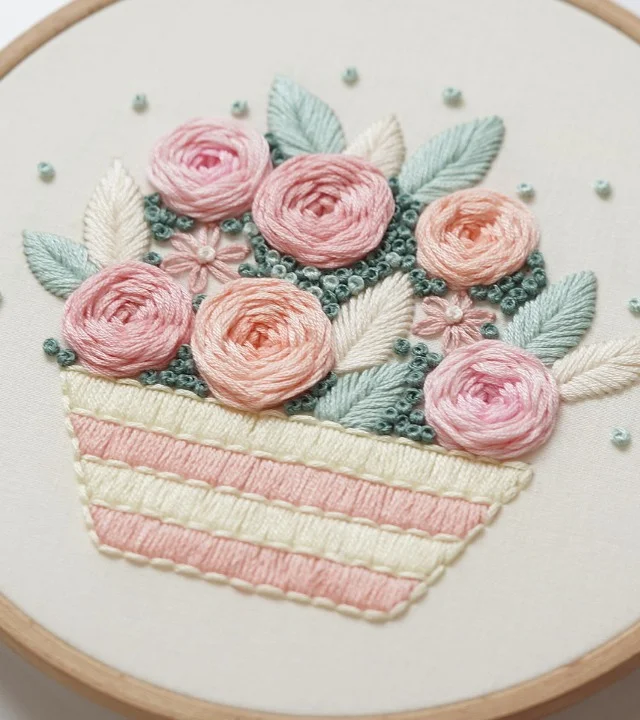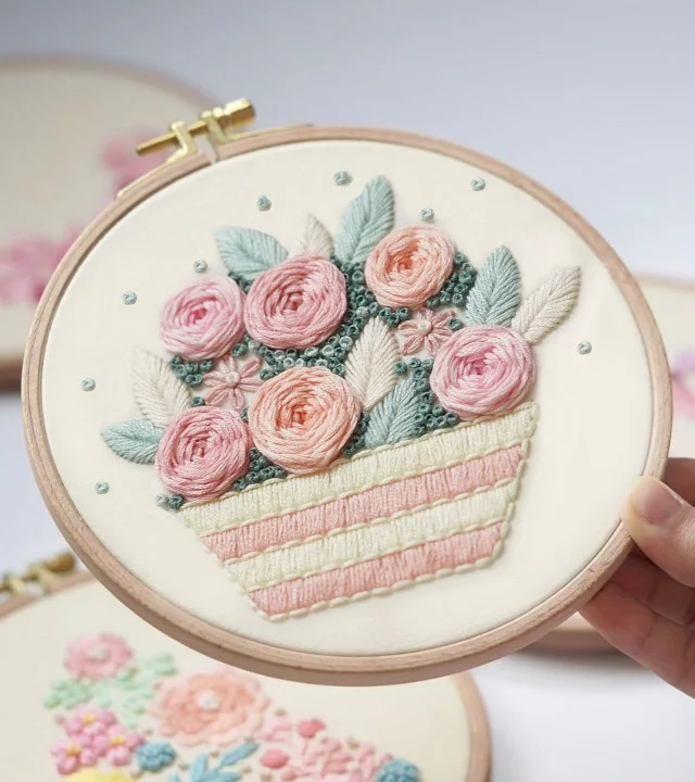🌹🎨 Welcome to our world of rose basket embroidery! This embroidery kit will take you on a journey filled with floral scents and creativity. Let's explore how to embroider beautiful roses onto fabric and add vibrant colors to your life!