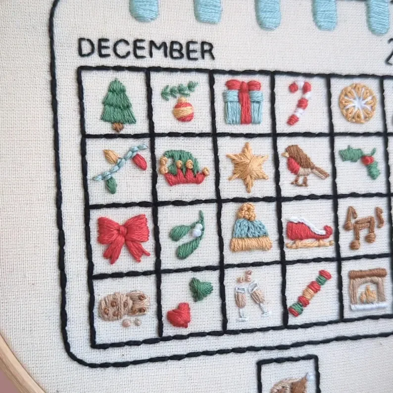 In the lead up to December you will stitch the calendar outline. Then, starting on December 1st, you will stitch an image each day to represent something you have done that day.
