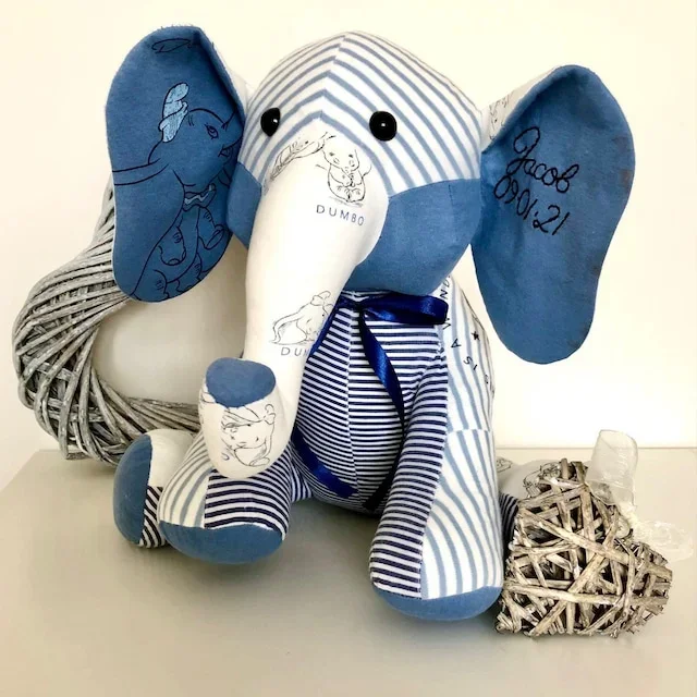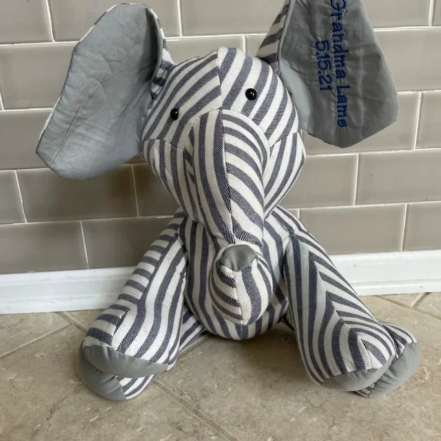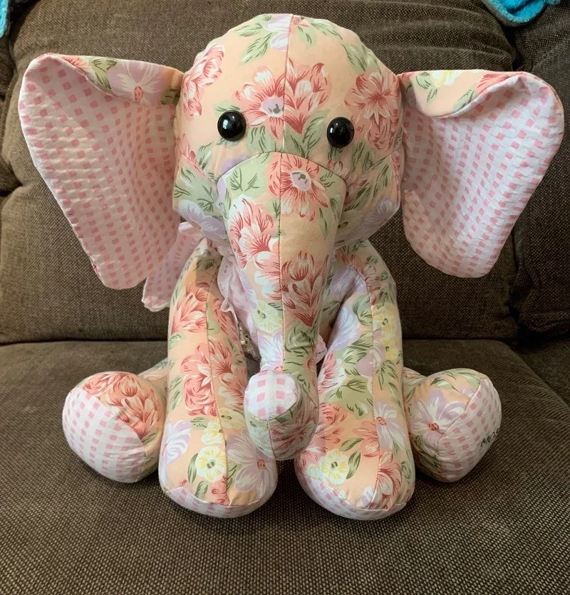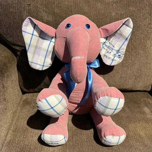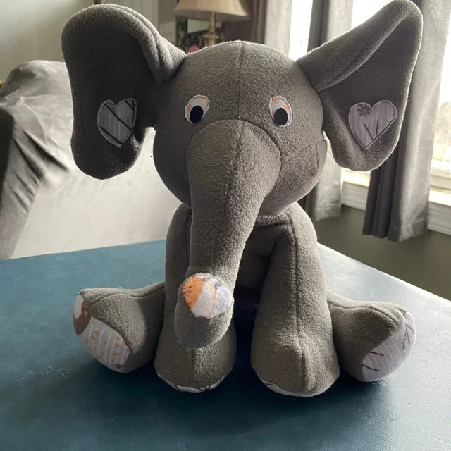 Memory Elephantmade from the clothing of a loved one who passed to help keep their memory alive. Can also be made from a child’s clothing to preserve their childhood memories.*Hand made using a huggable patterns pattern.