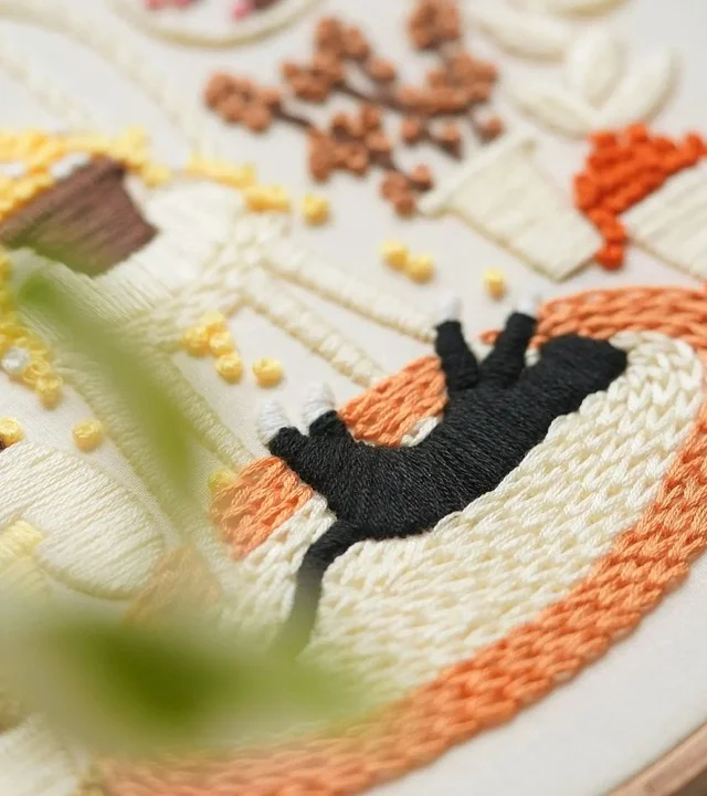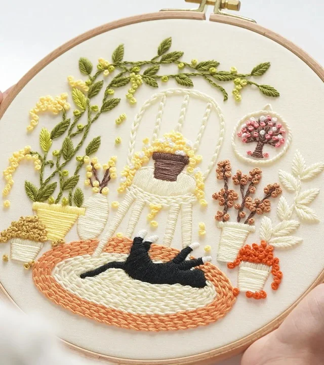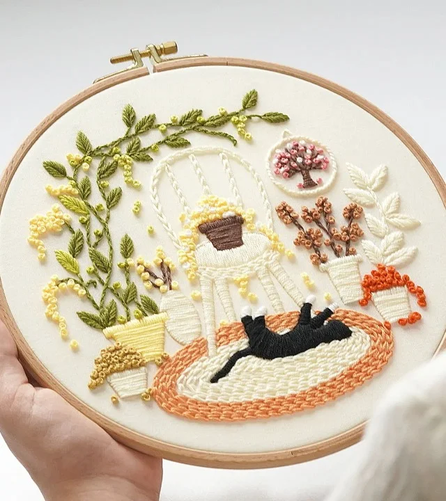 Want to add a touch of playfulness and warmth to your living room? This embroidery kit is your perfect choice! 🐱🌿